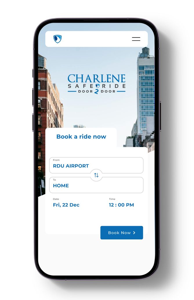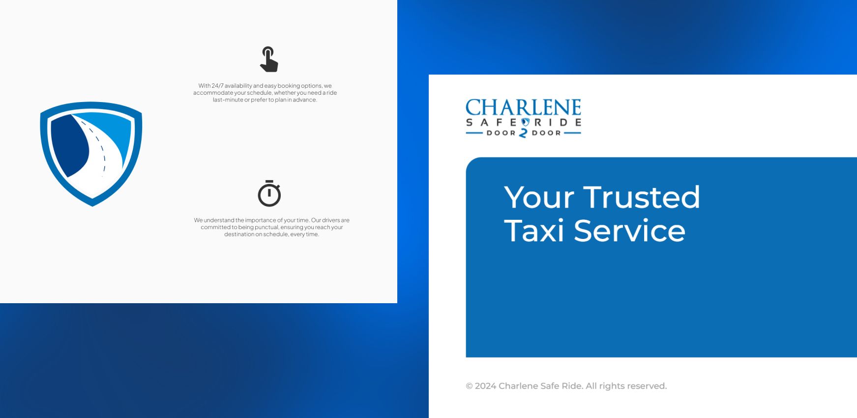Charlene Safe Ride aimed to highlight their personalized private taxi and dedicated airport pickup services while maintaining the user-friendliness of popular booking apps.